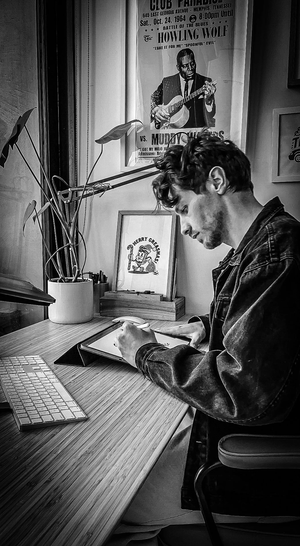 Burger Queen was actually designed back in 2021 in pen ink and paper before I made the transition to iPad. The challenge with this design was keeping the visual as far away as possible from the obvious competitor and so thinking of different applications of the word “Queen” my client loved the idea of playing on the ‘Burger Queen of Hearts’ direction. With that, the playing card queen holding the burger was born.